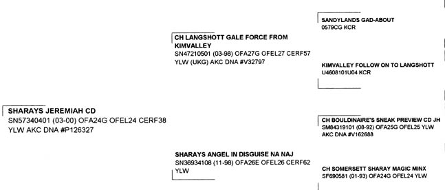 Pedigree for ShaRay's Jamee and Jeremiah. Littermates born August 21, 1998